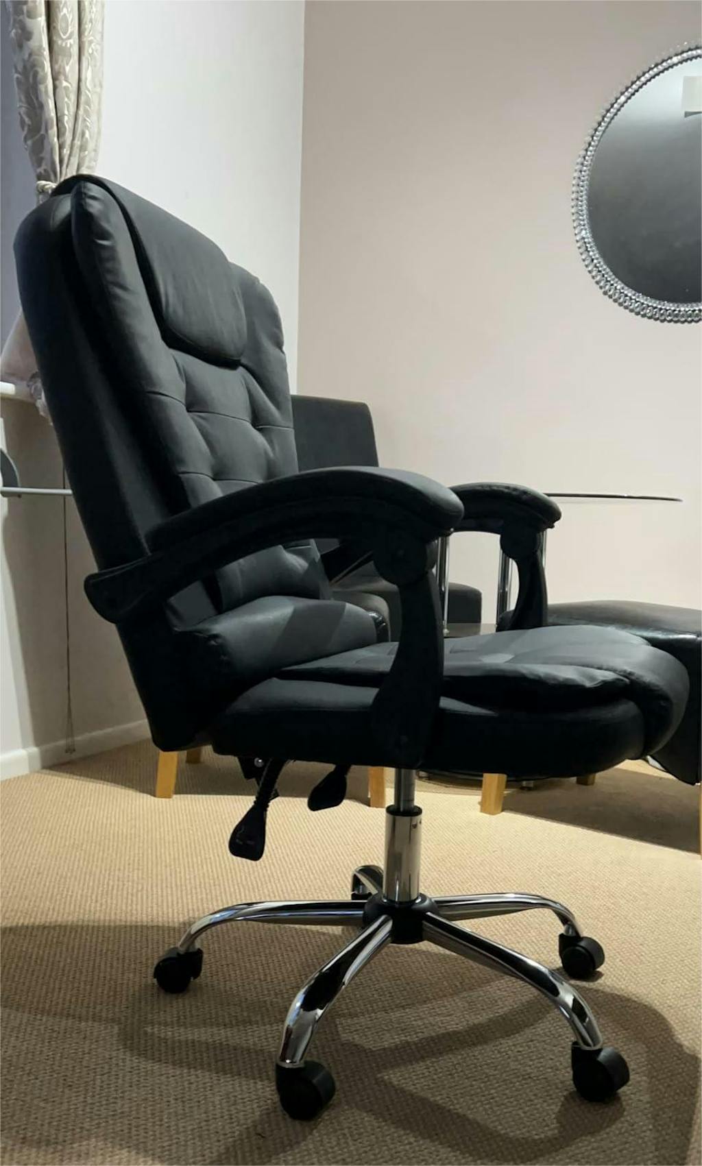 Das Äußere dieses Computer-Schreibtischstuhls ist aus hochwertigem PU-Leder gefertigt und sorgt für einen stilvollen Look, der in Ihr Zuhause oder Büro passt. Der Sitz, die Rückenlehne und die Armlehnen sind mit hochdichtem Schaumstoff gefüllt. Der verdickte Schwamm ist weicher für besseren Komfort und bietet Ihnen mehr Entspannung und Entlastung bei Ermüdung.