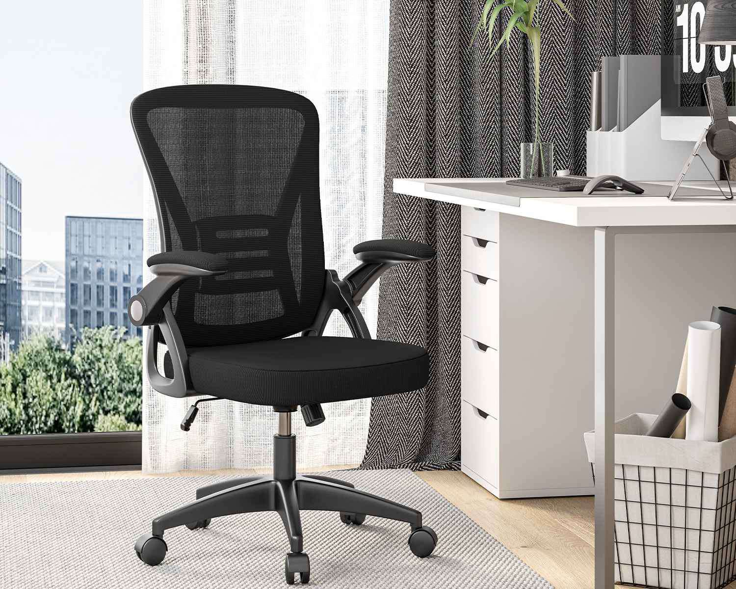 Bürostuhl Ergonomischer Schreibtischstuhl mit 90° Hochklappbarer Armlehne, Höhenverstellbarer Bürostuhl